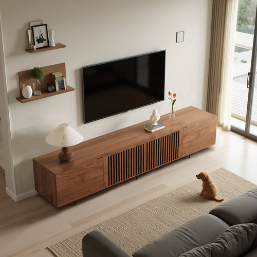 TV Stand, Wide Sturdy Modern Entertainment Center with Adjustable Shelves, Sliding Doors & Ample Storage, for 90 Inch TVs, 86 Inch\u002F70.8 Inch\u002F55 Inch, Walnut\u002FBlack\u002FOak, Media Console for Living Room Bedroom, with Power Outlet -